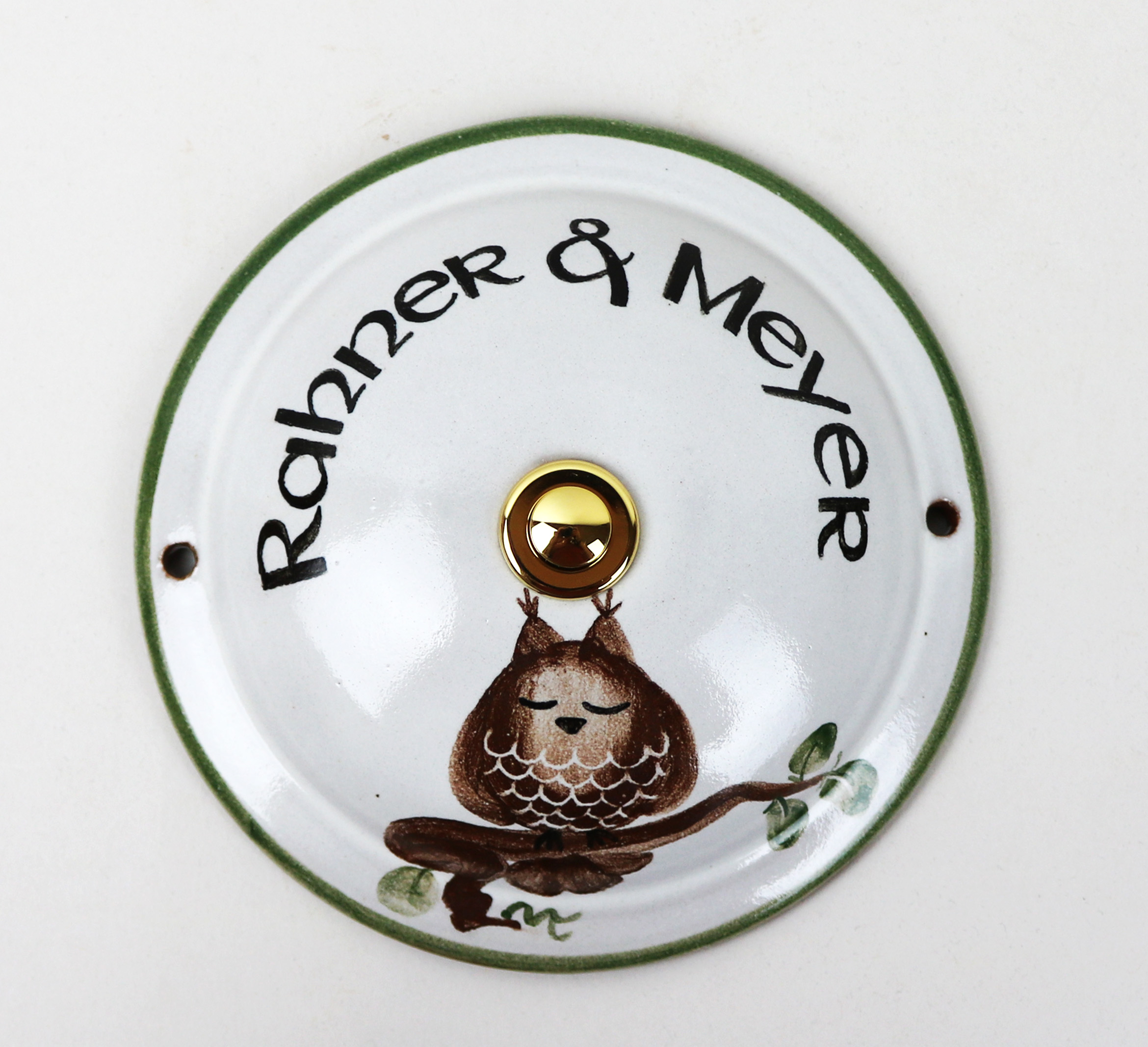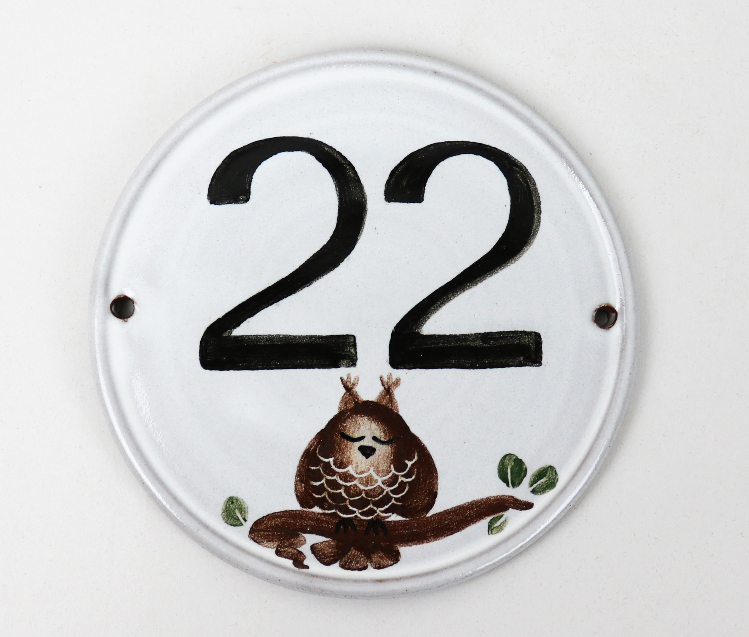 Artikelnummer: 0 177 1 ø 13 cm, 2 Löcher mit dem Motiv Uhu und zwei Ziffern